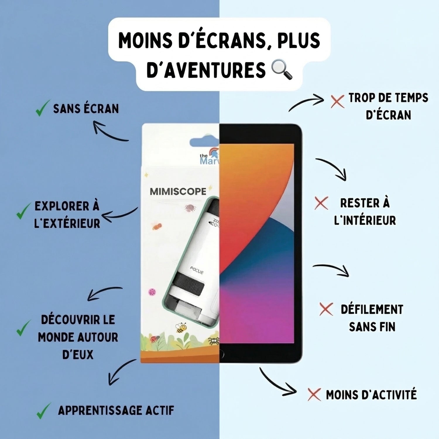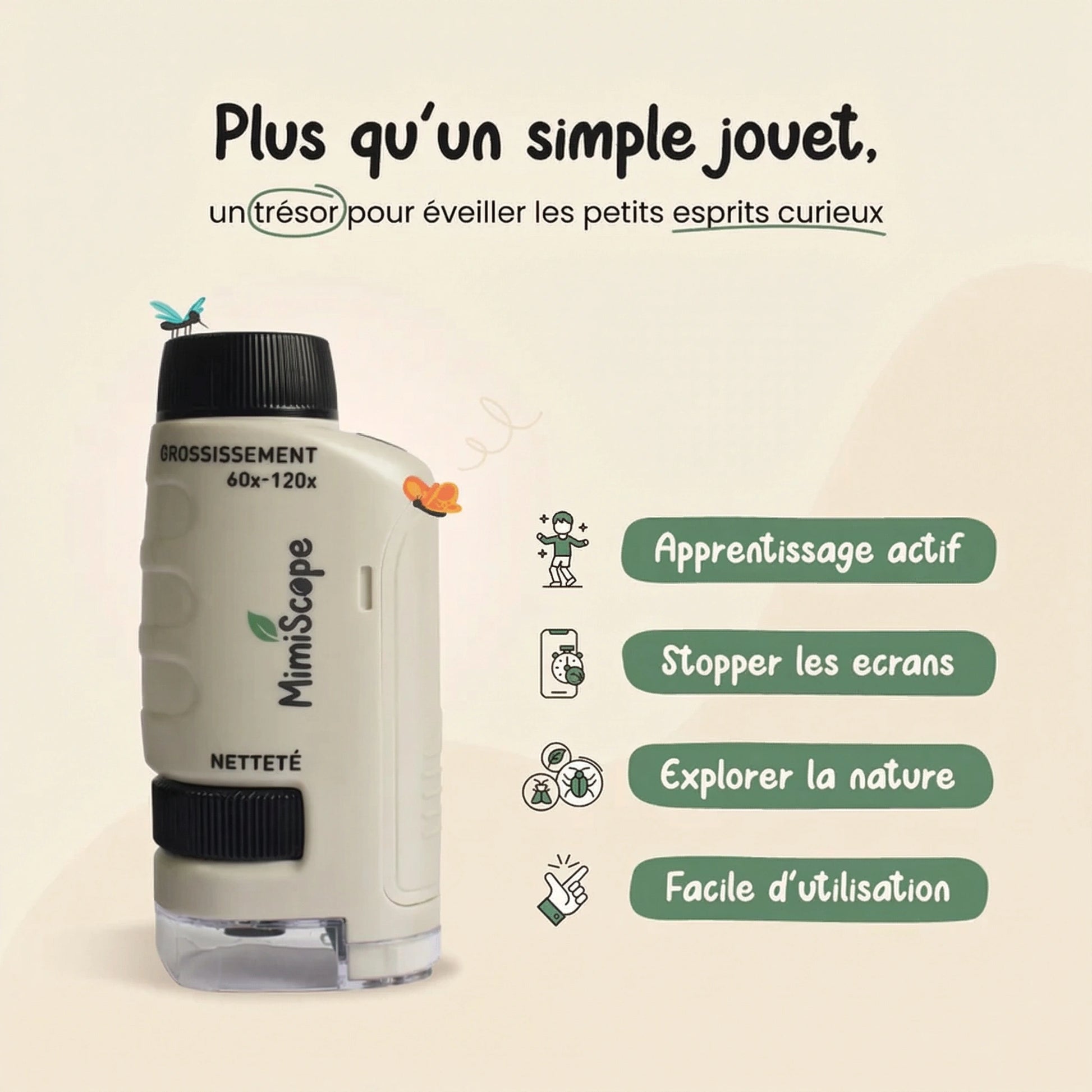Le Mimiscope éloigne naturellement les enfants des écrans en les plongeant dans un monde réel fascinant.
